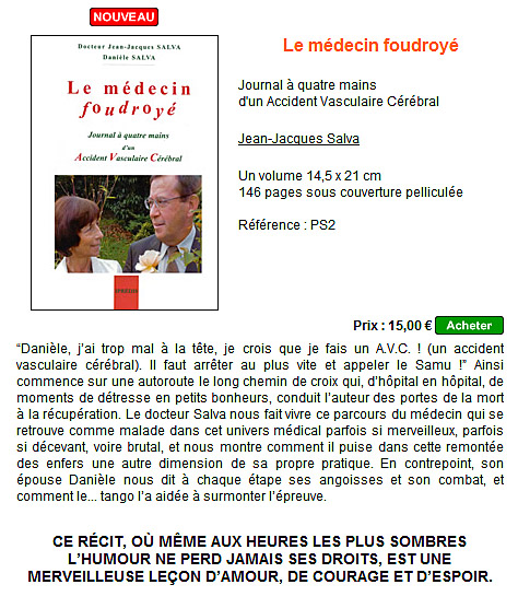 Dans son ouvrage ci-contre, il nous propose un témoignage poignant sur un accident vasculaire cérébral dont il a été victime il y a quelques mois.