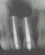 Surtout SILICEA, remède de la suppuration chronique sans tendance à la guérison, sans signe inflammatoire. Remède d'élimination de corps étranger (pâte canalaire en excès dans le péri-apex). Commencer par une basse dilution d’action centrifuge deux fois par jour, puis élever la dilution jusqu'à amélioration (action lente).