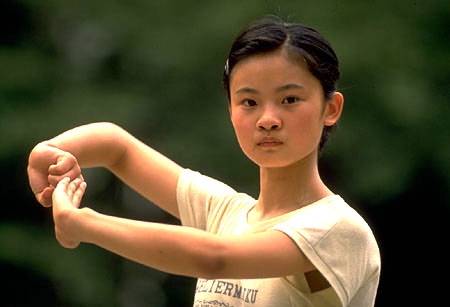 Noter ci-dessous un exemple de type morphologique fluorique ou dystrophique, avec son hyperlaxité ligamentaire excessive. Outre les caries, ces enfants "fluoriques" sont exposés, plus que tous les autres, aux troubles orthodontiques = dents mal implantées, irrégularités de formes, déformations des maxillaires, etc...