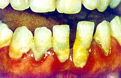 Ensuite, progressivement, la gingivite devient de plus en plus ulcéreuse. Si les causes locales le permettent, une ou plusieurs poches peuvent apparaître, avec une tendance à la suppuration, dans un contexte de gingivite ulcéreuse hémorragique. Théoriquement, il devrait exister une latéralité gauche prédominante, qui reste à vérifier par des radiographies panoramiques lorsque l'alvéolyse a commencé.