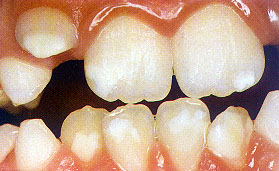 Les dents sont jaunes, elles se gâtent rapidement et au niveau des collets, elles se déchaussent, la gencive se rétractant (Kent).
