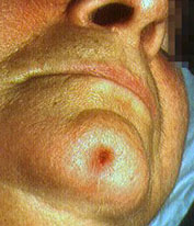 Inflammation aiguë avec suppuration avec des douleurs violentes (la sensation d’écharde décrite dans les livres n’est pas constante lors d’un abcès dentaire).